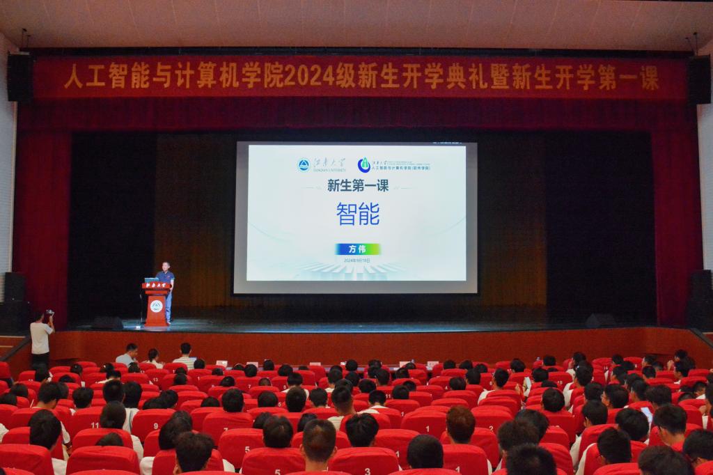 硕士新生代表、软件工程2024级硕士生梁子琦与在座同学讲述与江大的缘分,立志在实现高水平自立自强新征程中砥砺青春、奉献智慧。本科新生代表、计科申威2401班陈文斐在发言中表示,学院为大家提供了浓厚的学术氛围和广阔的成长空间,要以实际行动投入国家建设急需的前沿领域,为解决关键领域“卡脖子”领域难题做出青春贡献。
