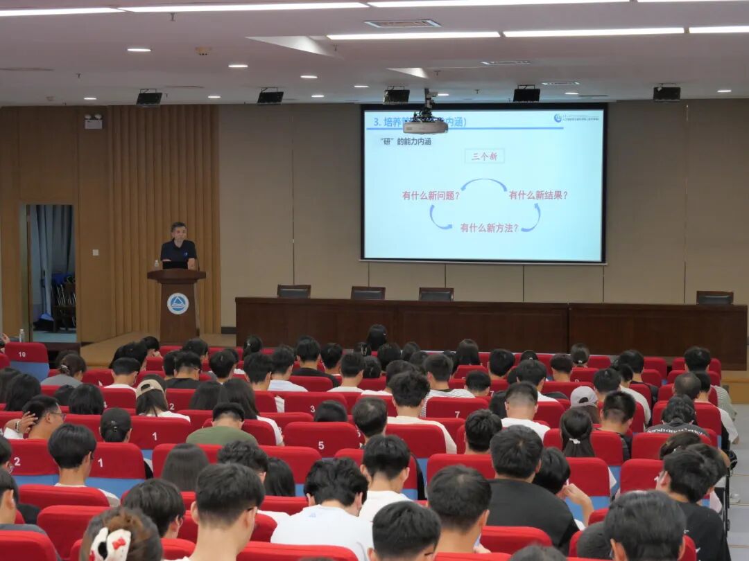 谢振平于图书馆三楼报告厅为研究生新生们作学术素养教育讲座。他强调了学院“敏”“实”的作风理念,以人才定位为切入点,提出“产研贯通,多链协作”的管理工作思路。他提醒同学们以诚信为重,重视提高科研学术素养,踏实度过科研生涯。